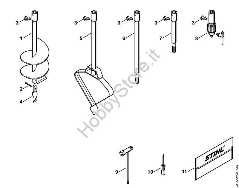 Ricambio originale Trapano a coclea per impianti diam. 150mm BT 121 BT 121-Z Stihl Contiene anche i ricambi da nr. 2 a 4