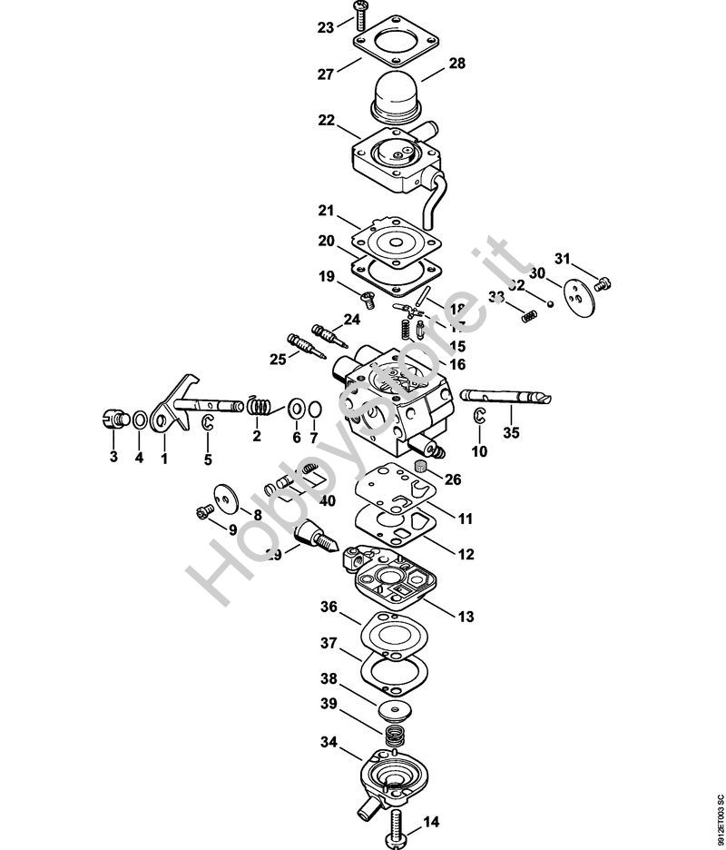 Ricambio originale Carburatore C1Q-S176A BT 130 BT 130-Z Stihl Contiene anche i ricambi da nr. 1 a 40