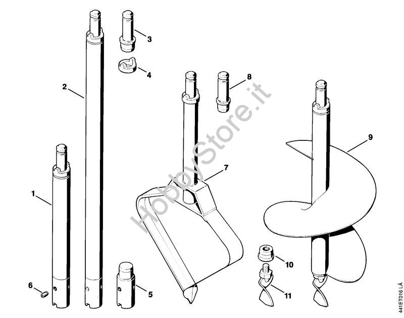 Ricambio originale Trivella per impianti BT 308 BT 308 Stihl Contiene anche i ricambi nr. 4 e 8
