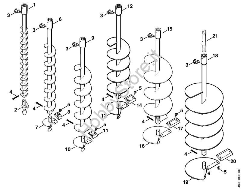Ricambio originale Trivella diam. 40 mm BT 309 BT 309 Stihl Contiene anche i ricambi da nr. 2 a 4
