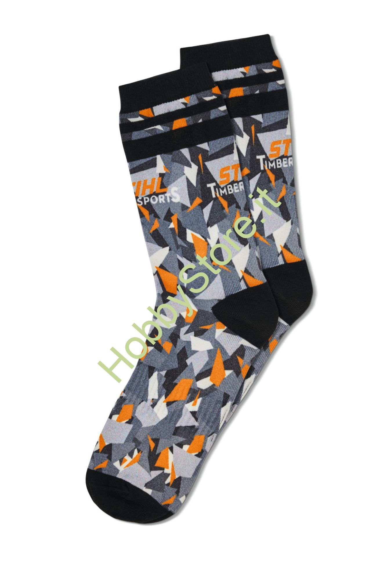 Calzini unisex per tutti gli usi marca Stihl. A prima vista questi calzini ricordano un motivo mimetico, ma non vogliono camuffare chi li indossa, al contrario: questi calzini attirano l'attenzione grazie al loro design speciale!