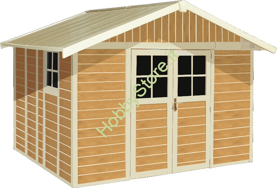 Casetta da giardino Sherwood Deco 11, lasciati sedurre dalle decorazioni legno simili al vero legno naturale. La casetta ha le dimensioni: 315x355x250h cm. Bellissima casetta Deco 11 Sherwood della ditta Grosfillex, la prima casetta in resina che riproduce fedelmente il colore e le venature del legno naturale.