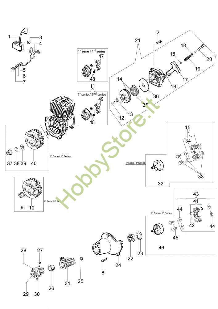 Ricambio Avviamento completo Avviamento e frizione DS 2800 T Decespugliatore della marca Efco Richiede pezzi:1