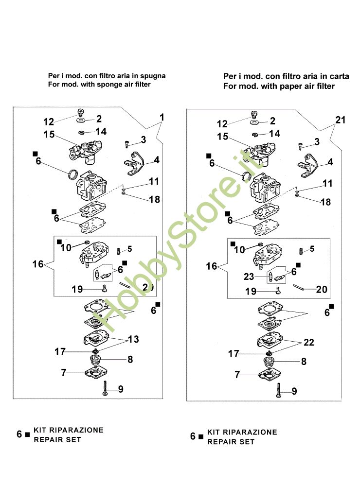 Ricambio Kit riparazione Carburatore 446 BP Decespugliatore della marca Oleo-Mac Richiede pezzi:1