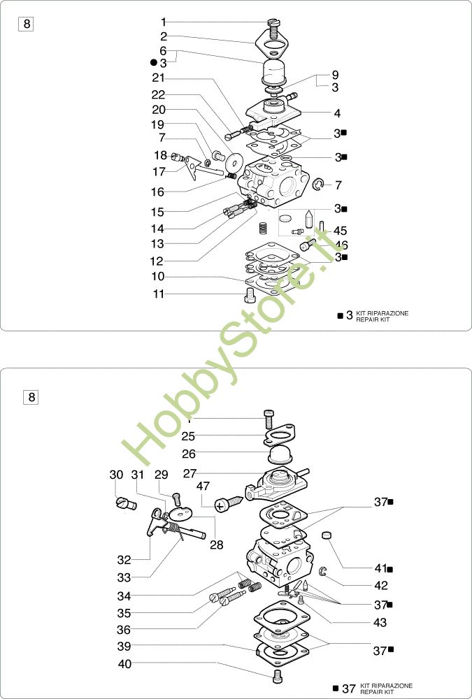 Ricambio Kit riparazione Carburatore WT-442C, C1Q-E7A 8405 Decespugliatore della marca Efco Richiede pezzi:1