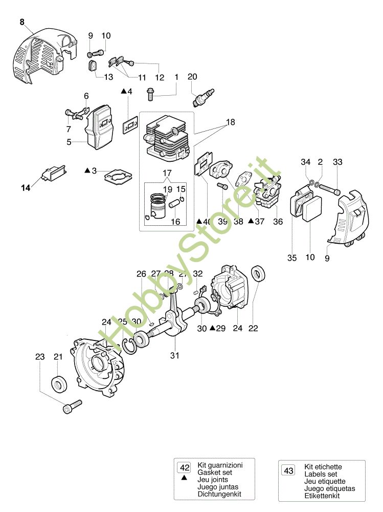 Ricambio Kit guarnizioni Motore 8250 R Decespugliatore della marca Efco Richiede pezzi:1