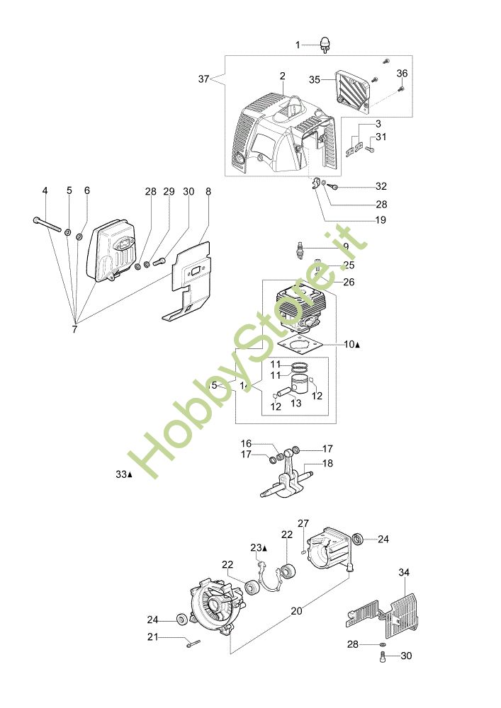 Ricambio Pistone completo Ø38 Motore EF 3600 Decespugliatore della marca Efco Richiede pezzi:1