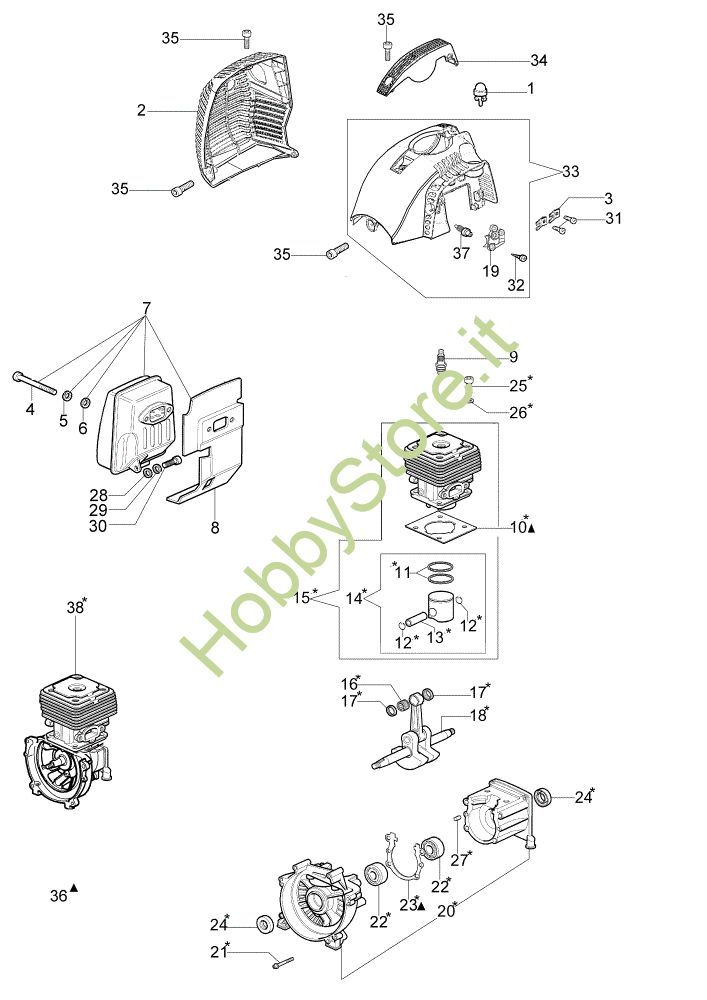 Ricambio Short block Motore BC 380 S Decespugliatore della marca Oleo-Mac Richiede pezzi:1