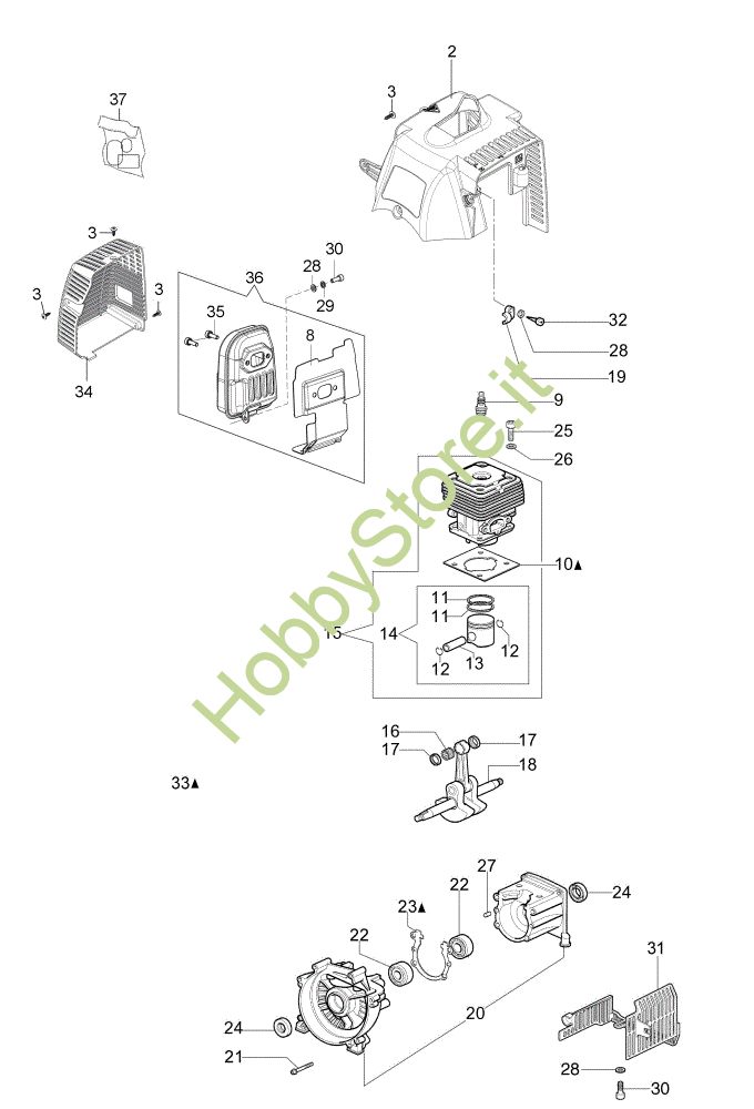 Ricambio Cilindro completo Ø40 Motore OM 43 Vers.2016 (Euro2) 50Y Decespugliatore della marca Oleo-Mac Richiede pezzi:1