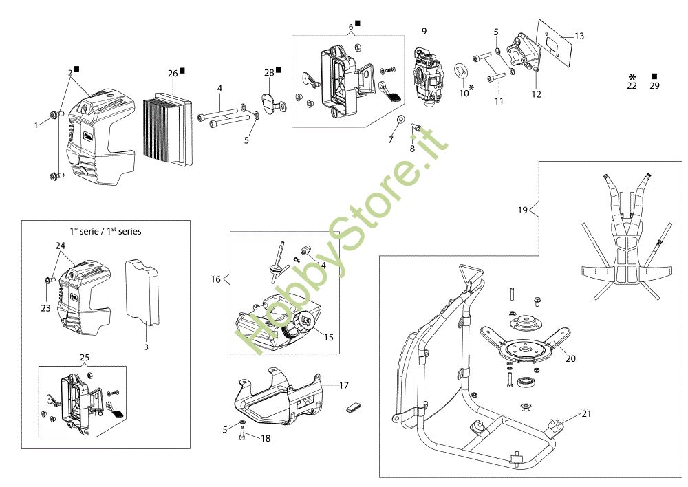 ATTENZIONE: Se nella lista sotto non compaiono i relativi ricambi riportati nell'esploso