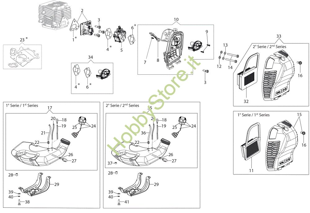 ATTENZIONE: Se nella lista sotto non compaiono i relativi ricambi riportati nell'esploso
