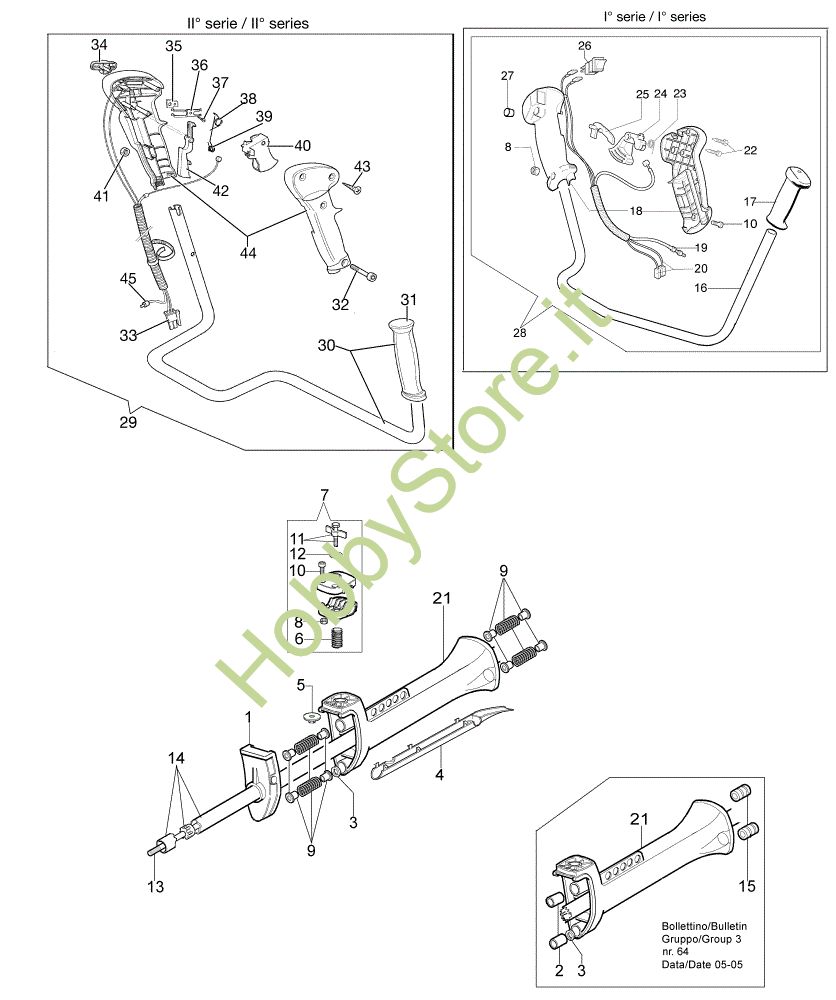Ricambio Manubrio completo SN 1791407249 BT3-115-01/12 Trasmissione 755 MASTER Decespugliatore della marca Oleo-Mac Richiede pezzi:1