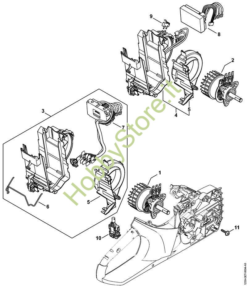 Esploso ricambi relativo all'elettromotore di una motosega a batteria msa 160 Stihl (tutti i modelli)