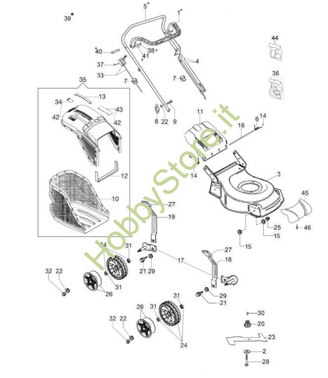 Se desideri acquistare i ricambi per il tuo rasaerba, nella pagina finale del carrello inserisci, nel campo note l'anno di acquisto del tuo rasaerba elettrico G 44 PK Comfort Plus (o G44PK), sarà così più facile per il nostro team individuare il ricambio/i ricambi corretto/i da spedirti.