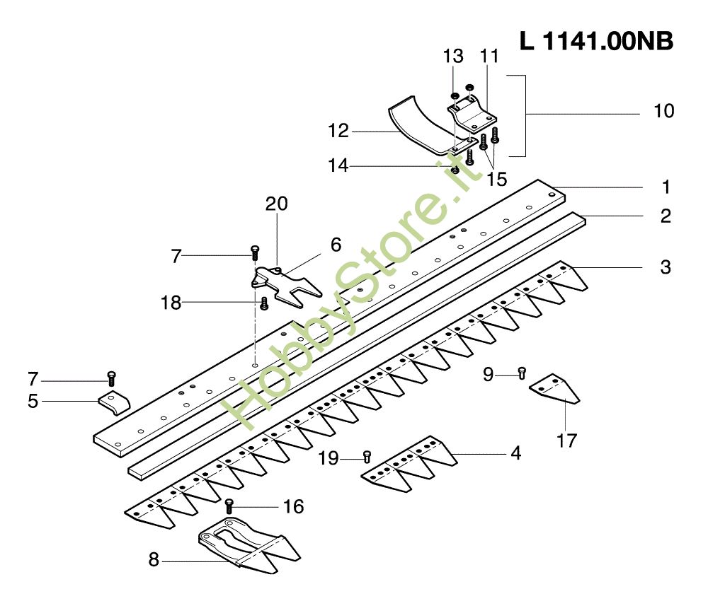 Ricambio Premilama (Lungo) Laterali; Side Barra falciante L0114100 NB (Da Marzo 2002) BRIK 1 Reversibile (Fino/Until 2009) Falciatrice della marca Nibbi Richiede pezzi:1