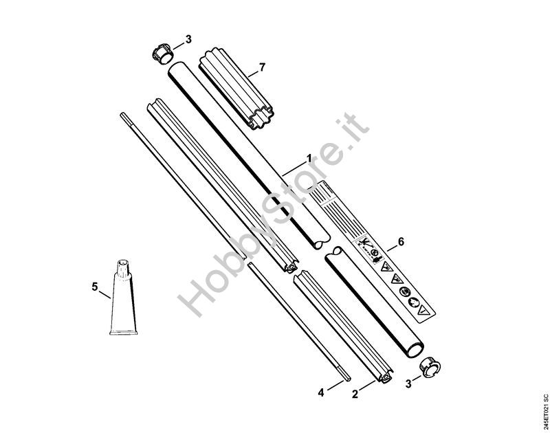 Ricambio originale Stelo diam. 25,4 mm x 1,5 m FC 85 FC 85 Stihl Contiene anche i ricambi nr. 2, 3, 6