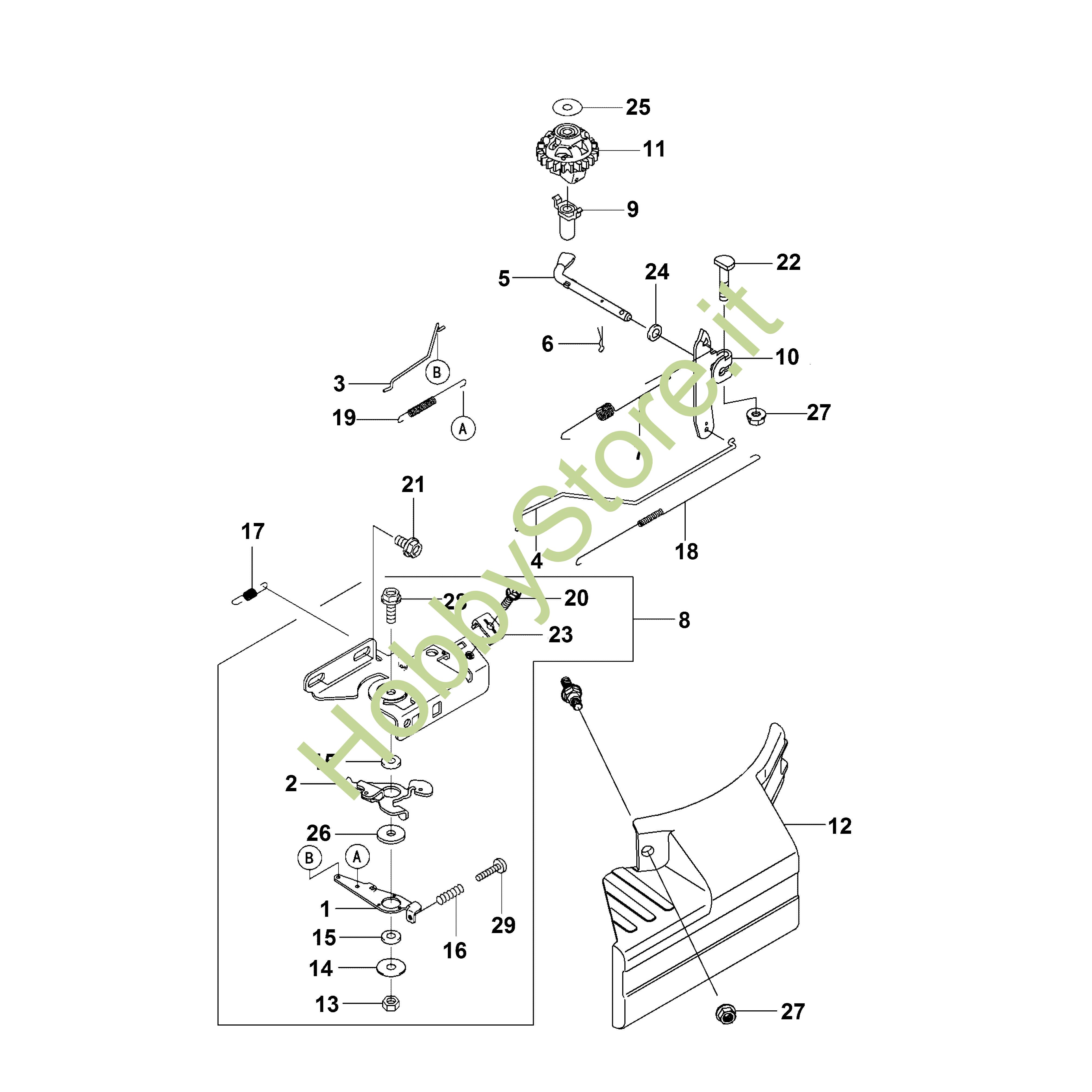 Ricambio originale Comando acceleratore compl. Kawasaki FJ FJ180V-AM93 Stihl Contiene anche i ricambi nr. 1,2,13 a 16,23,26,28,29