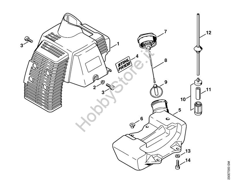 Cappottatura, serbatoio carburante Decespugliatrici spalleggiabilli (FR) FR 108 della marca STIHL