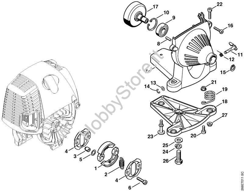 Ricambio Carenatura ventola Decespugliatrici spalleggiabilli (FR) FR 130 T STIHL Contiene anche i ricambi nr. da 8 a 14, 22, 27