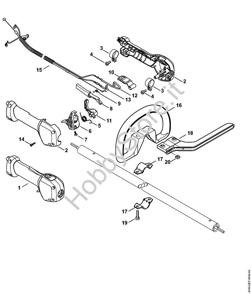 Ricambio Impugnatura di comando Decespugliatrici spalleggiabilli (FR) FR 131 T STIHL Contiene anche i ricambi da n. 2 a 14