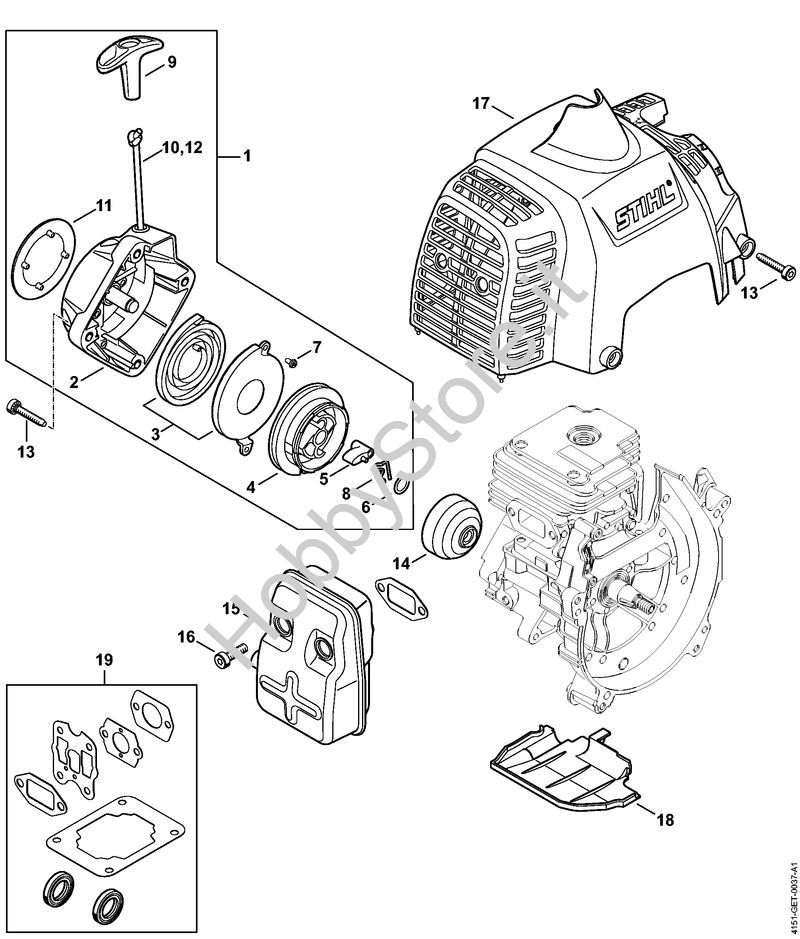 Dispositivo avviamento, silenziatore Decespugliatrici spalleggiabilli (FR) FR 235 della marca STIHL