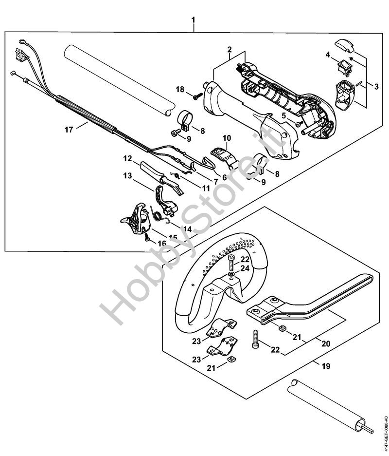 Ricambio Impugnatura di comando Decespugliatrici spalleggiabilli (FR) FR 460 TC-EFM STIHL Contiene anche i ricambi da n. 2 a 18