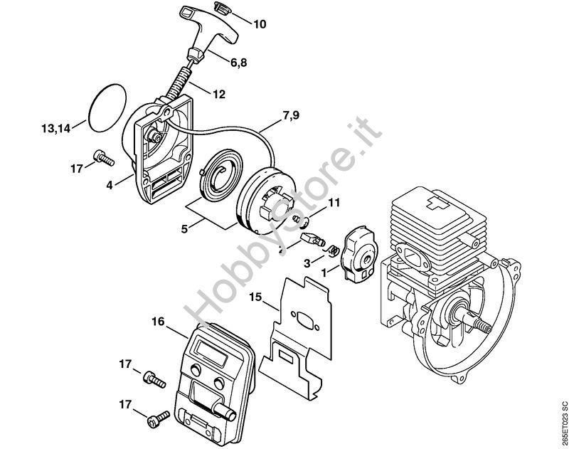 Dispositivo avviamento, silenziatore Decespugliatrici spalleggiabilli (FR) FR 85 T della marca STIHL