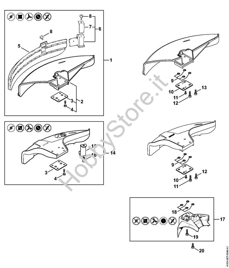 Ricambio Riparo Decespugliatrici (FS) FS 100 STIHL Contiene anche i ricambi n. 3 e 4