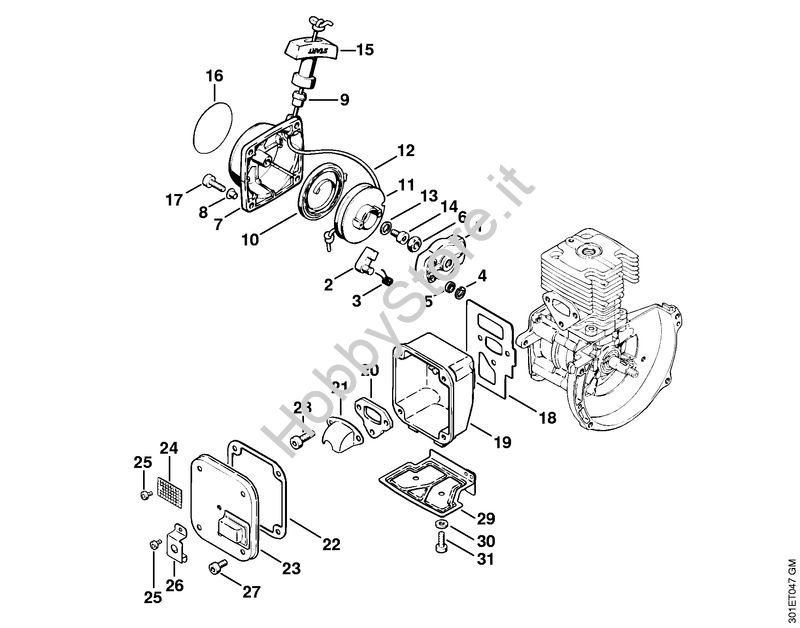 Ricambio Dispositivo di avviamento Decespugliatrici (FS) FS 106 STIHL Contiene anche i ricambi da n. 7 a 15