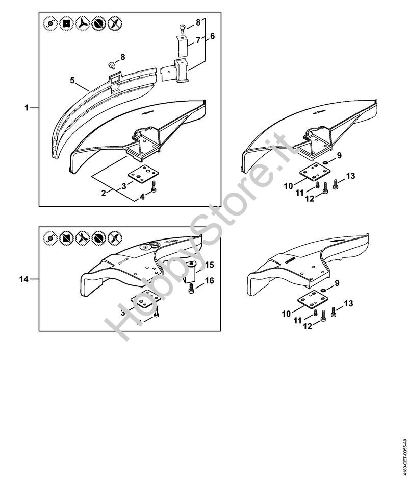 Ricambio Riparo completo Decespugliatrici (FS) FS 110 RX-Z STIHL Contiene anche i ricambi da n. 2 a 8