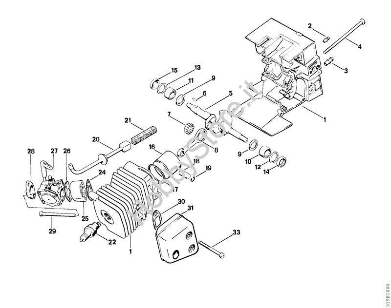 Carter albero a gomito, pistone Decespugliatori (FS) FS 150 della marca STIHL