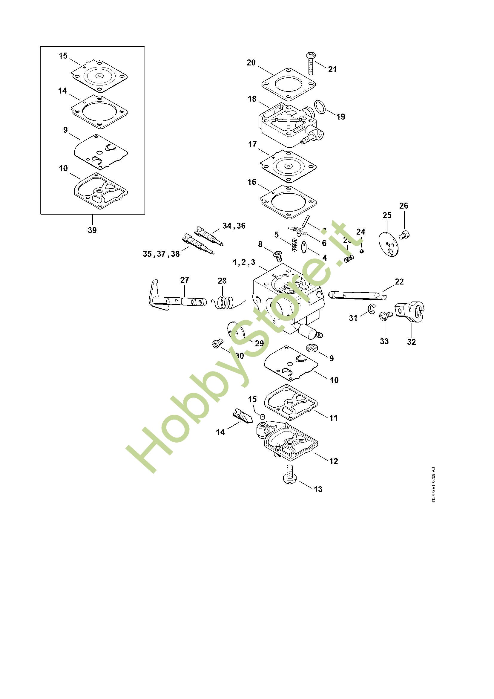 Ricambio Carburatore 4134/22 Decespugliatrici (FS) FS 250 STIHL Contiene anche i ricambi nr. da 4 a 33, 36, 37