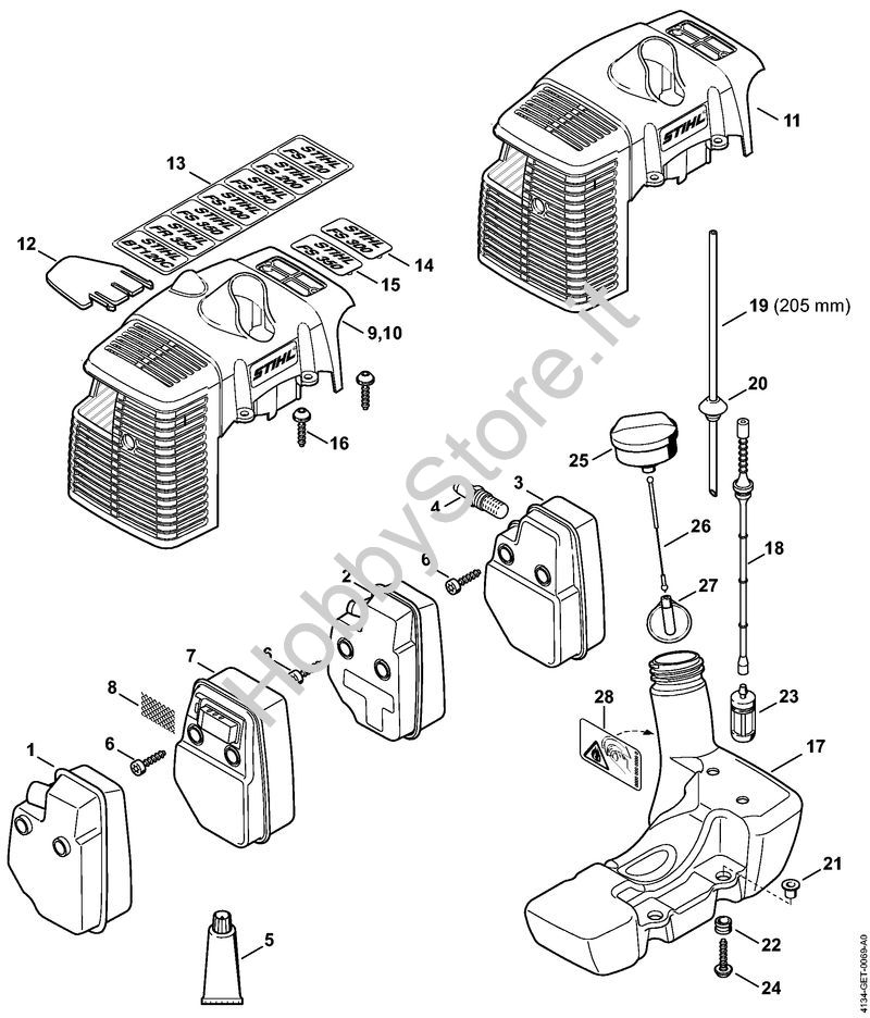 Silenziatore, cappottatura, Serbatoio carburante Decespugliatori (FS) FS 350 della marca STIHL