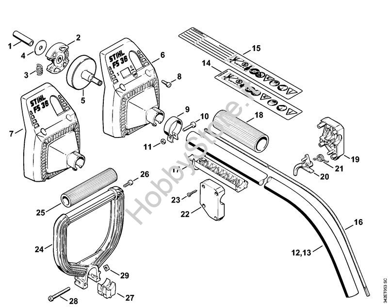 Ricambio Impugnatura circolare Decespugliatrici (FS) FS 36 R STIHL Contiene anche i ricambi da n. 25 a 29
