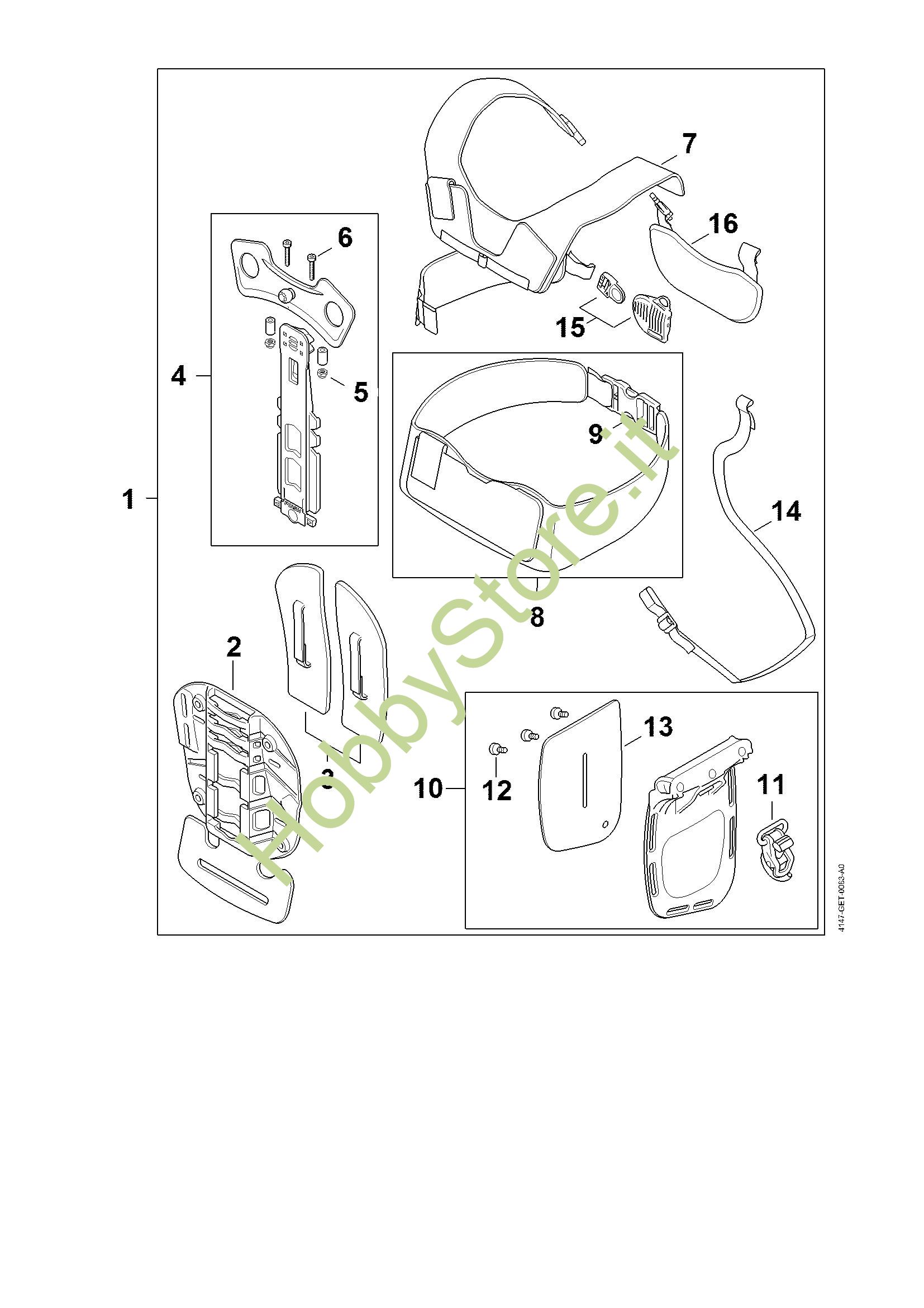 Ricambio Schienale rigido Decespugliatori (FS) FS 410 C-EM L STIHL Contiene anche i ricambi n. 5 e 6
