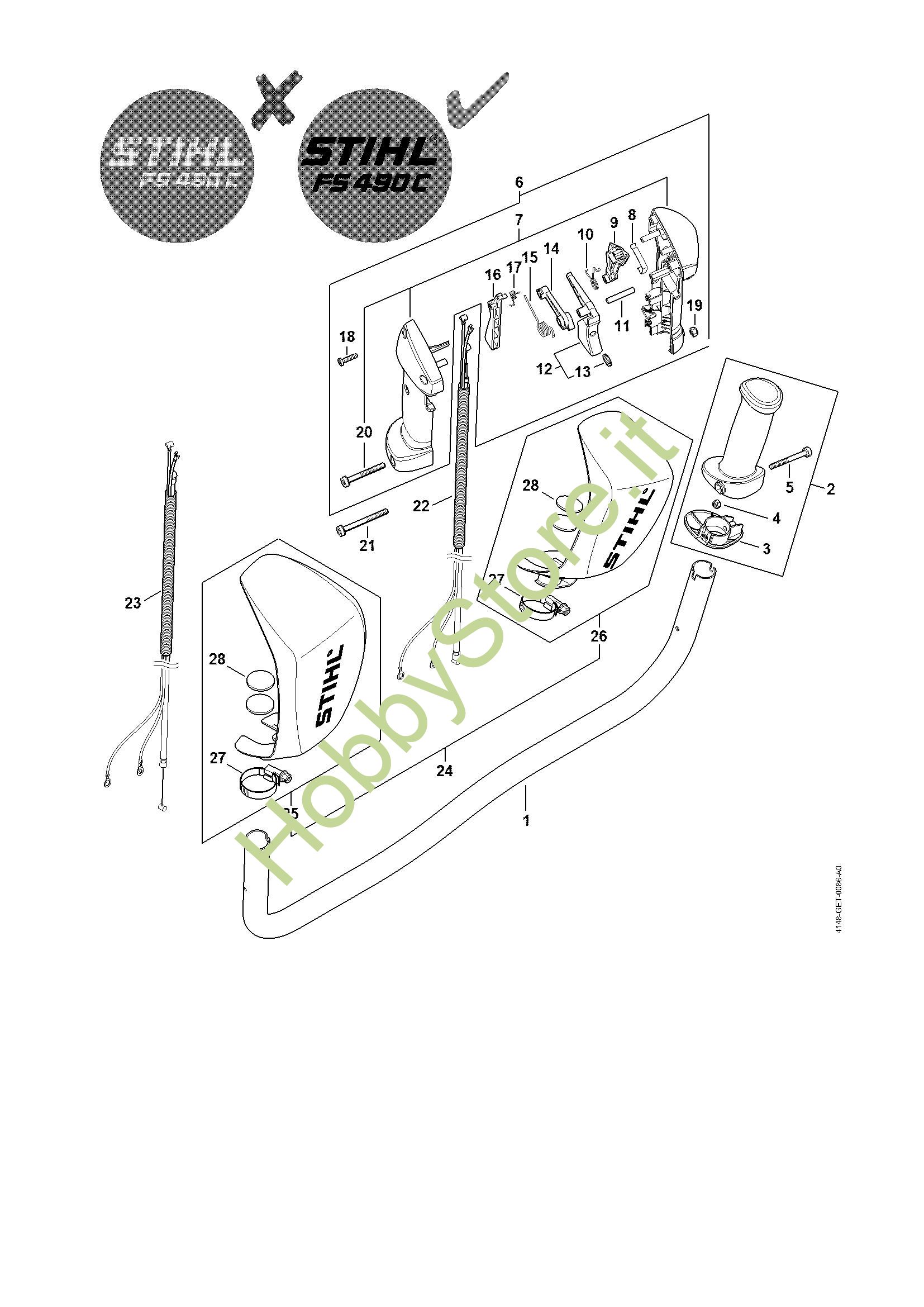 Ricambio Impugnatura Decespugliatori (FS) FS 490 C-EM STIHL Contiene anche i ricambi da n. 3 a 5