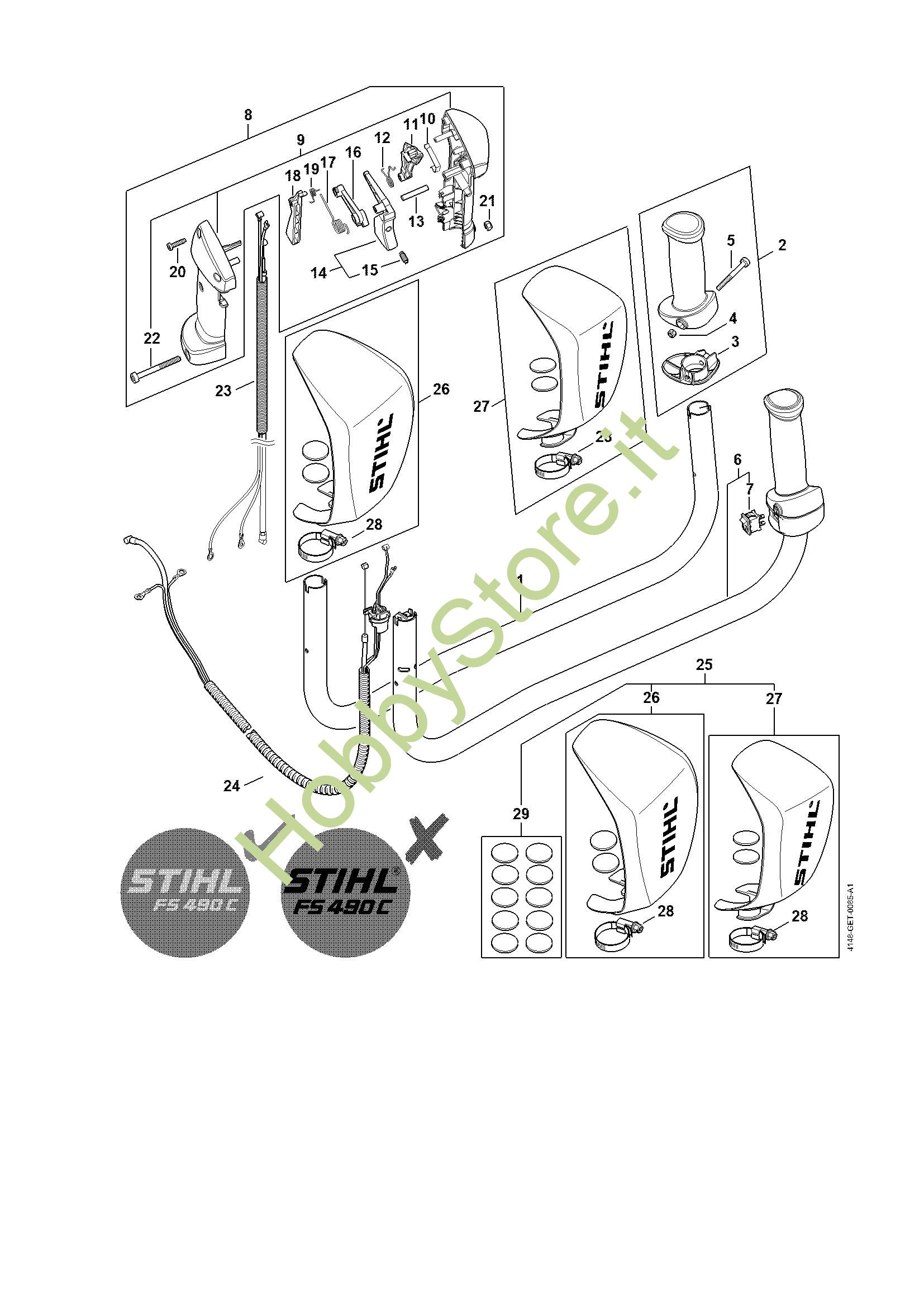 Ricambio Impugnatura Decespugliatori (FS) FS 490 C-EM K STIHL Contiene anche i ricambi da n. 3 a 5