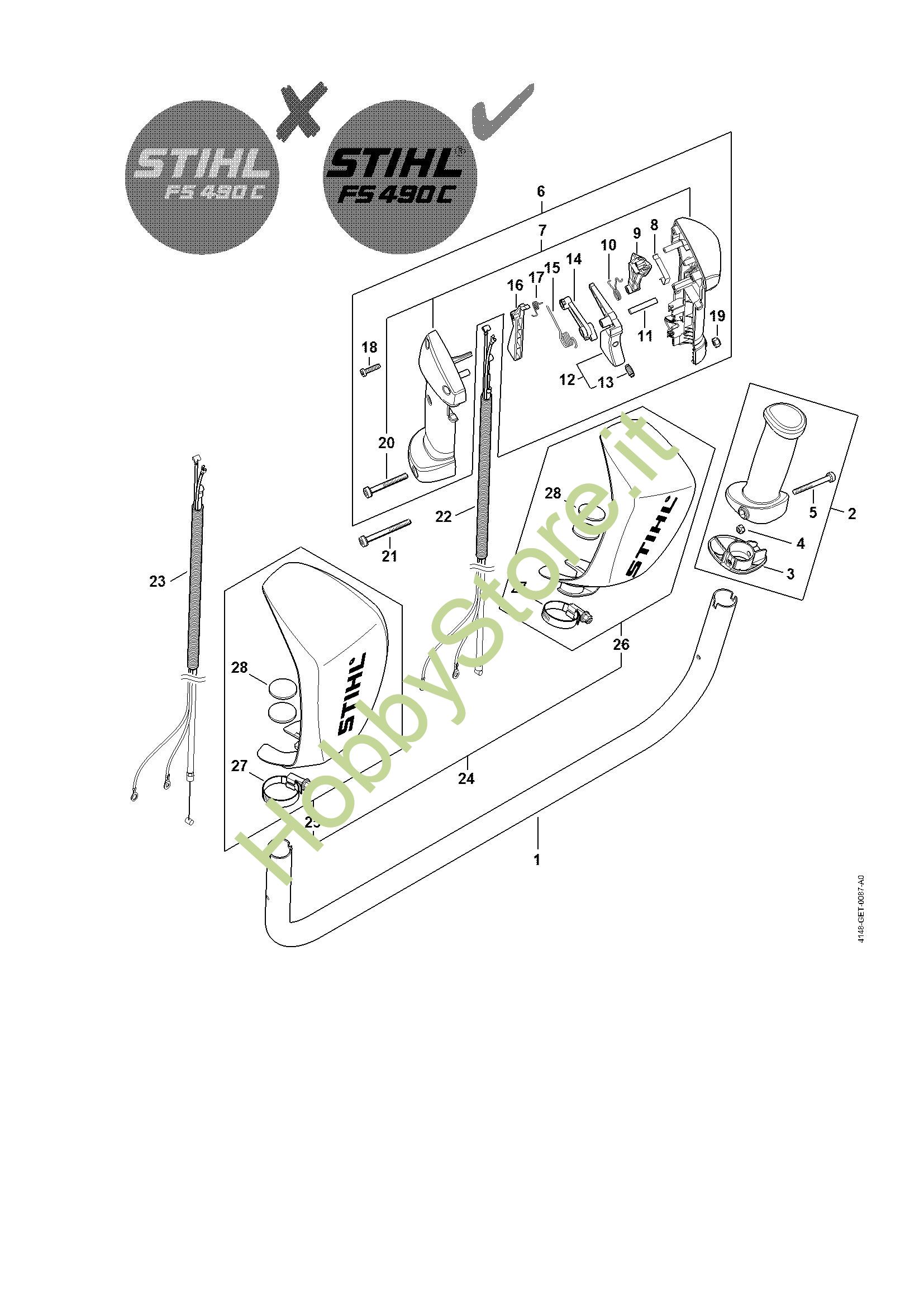 Ricambio Impugnatura Decespugliatori (FS) FS 490 C-EM K STIHL Contiene anche i ricambi da n. 3 a 5