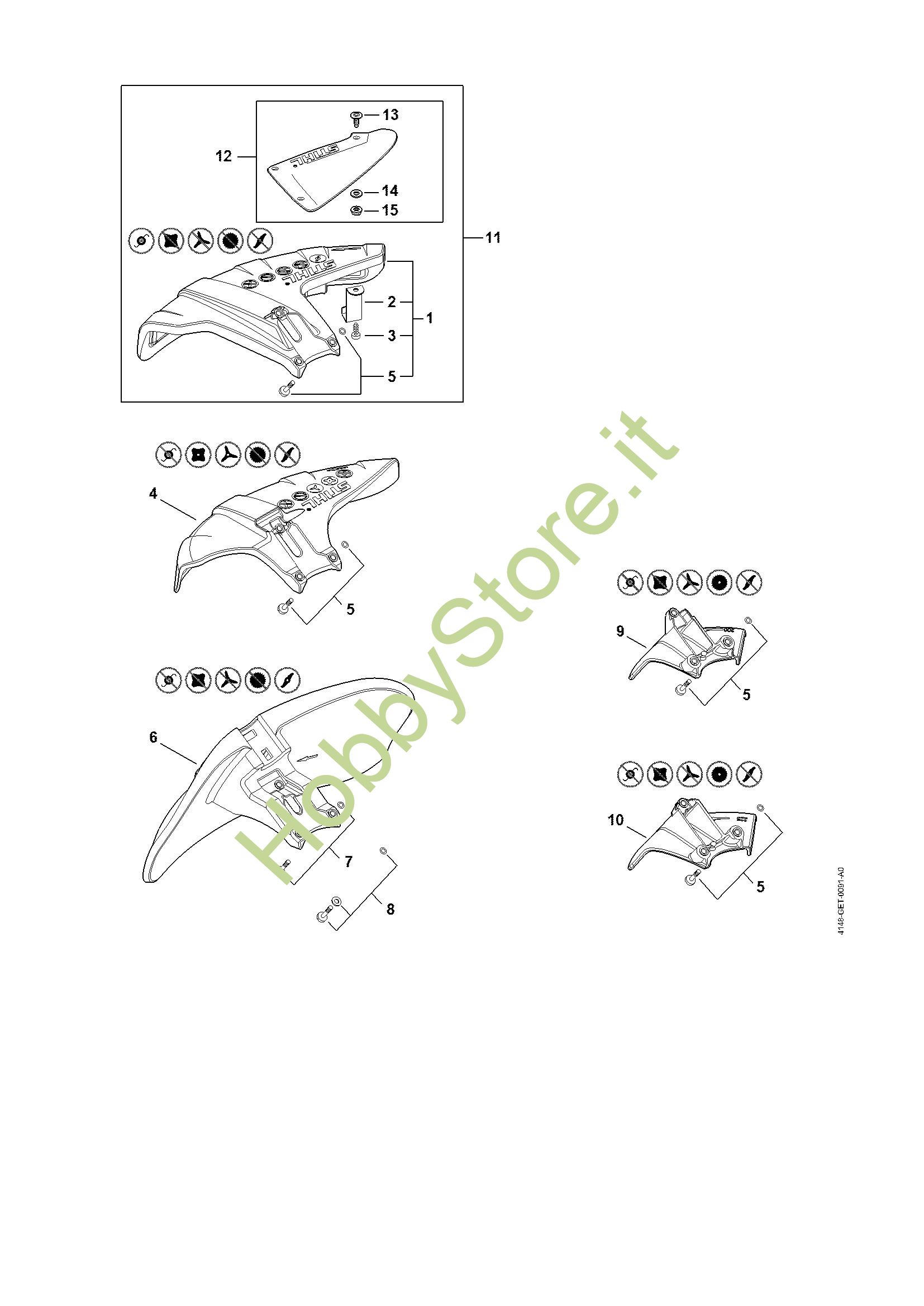 Ricambio Riparo Decespugliatori (FS) FS 490 C-EM L STIHL Contiene anche i ricambi da n. 13 a 15