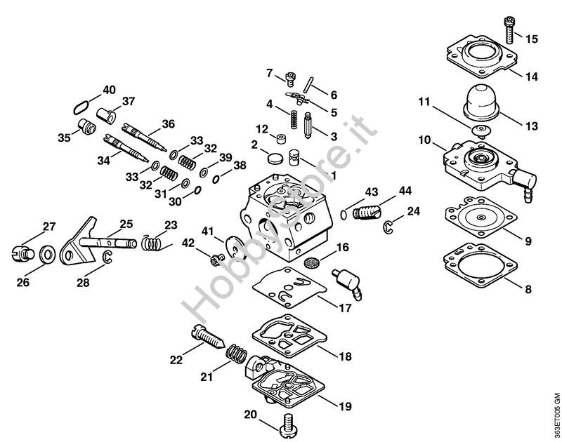 Ricambio Serie particolari carburatore Decespugliatrici (FS) FS 74 STIHL Contiene anche i ricambi nr. 8, 9, 17, 18