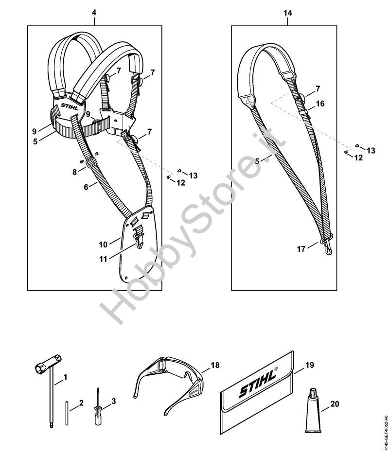Ricambio Tracolla Decespugliatrici (FS) FS 94 RC-E STIHL Contiene anche i ricambi nr. 7 e da 15 a 17
