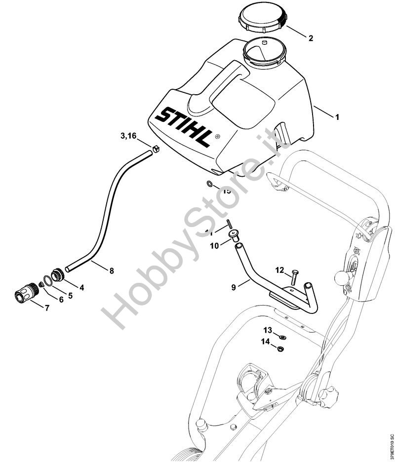 Ricambio Gruppo di applicazione serbatoio acqua Troncatrici (TS) FW 20 STIHL Contiene anche i ricambi da n. 1 a 14