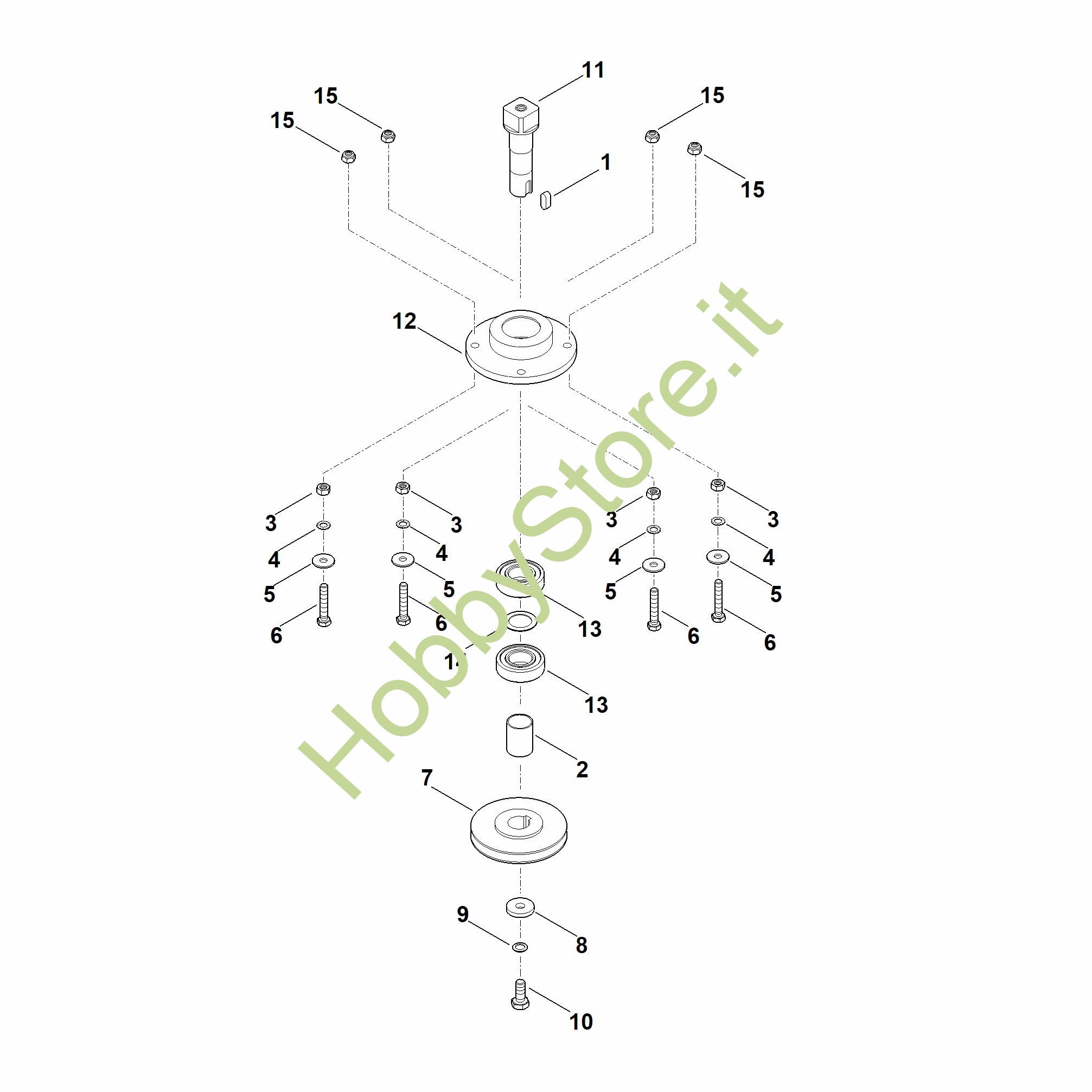 Ricambio Albero lama compl. Biotrituratori (GH) GH 370.1 S STIHL Contiene anche i ricambi nr. 1,2,11 a 14