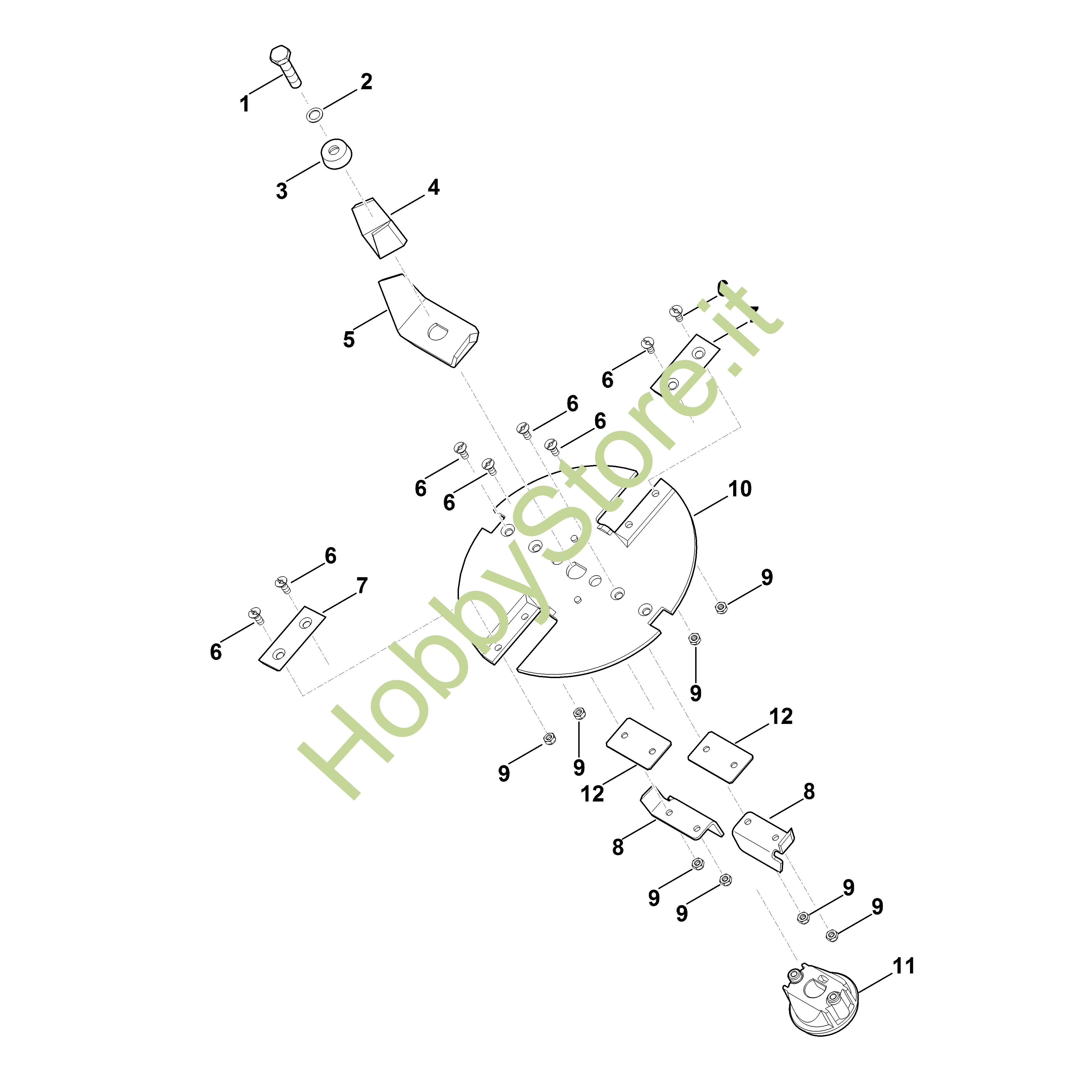 Ricambio Disco portalame compl. Trituratori elettrici (GHE) GHE 260.0 STIHL Contiene anche i ricambi nr. da 6 a 10 e 12