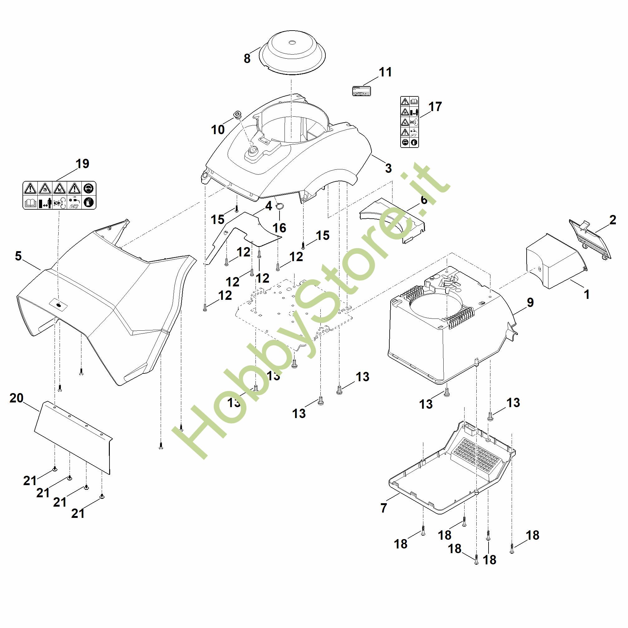 Ricambio Copertura Trituratori elettrici (GHE) GHE 420.0 STIHL Contiene anche i ricambi n. 18