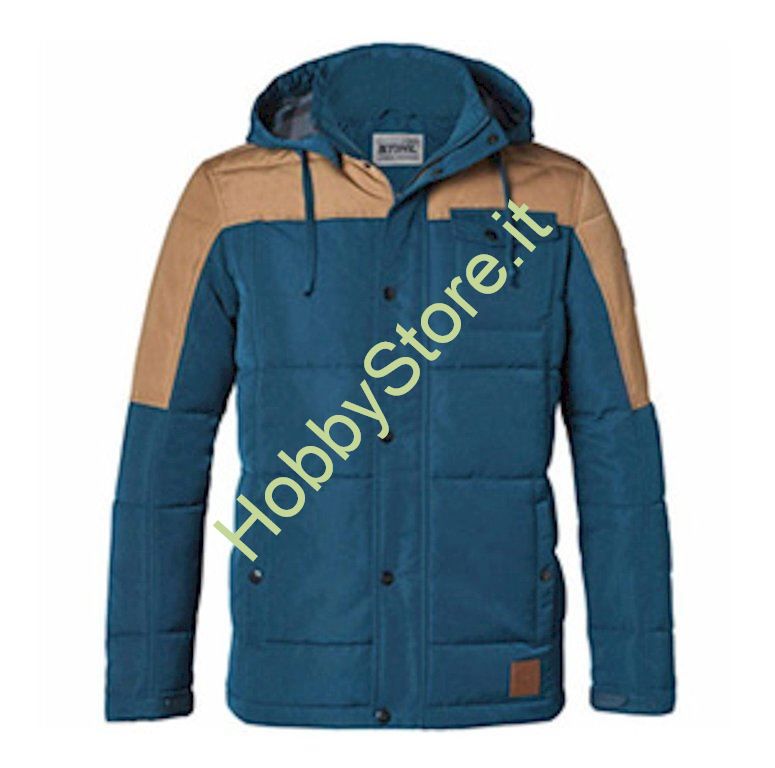 Caratteristiche: elegante e sportiva allo stesso tempo, imbottita, con cappuccio staccabile, materiale esterno idrorepellente, tasche aperte ai lati, cerniera lampo con tiretto "Stihl ElastoStart"