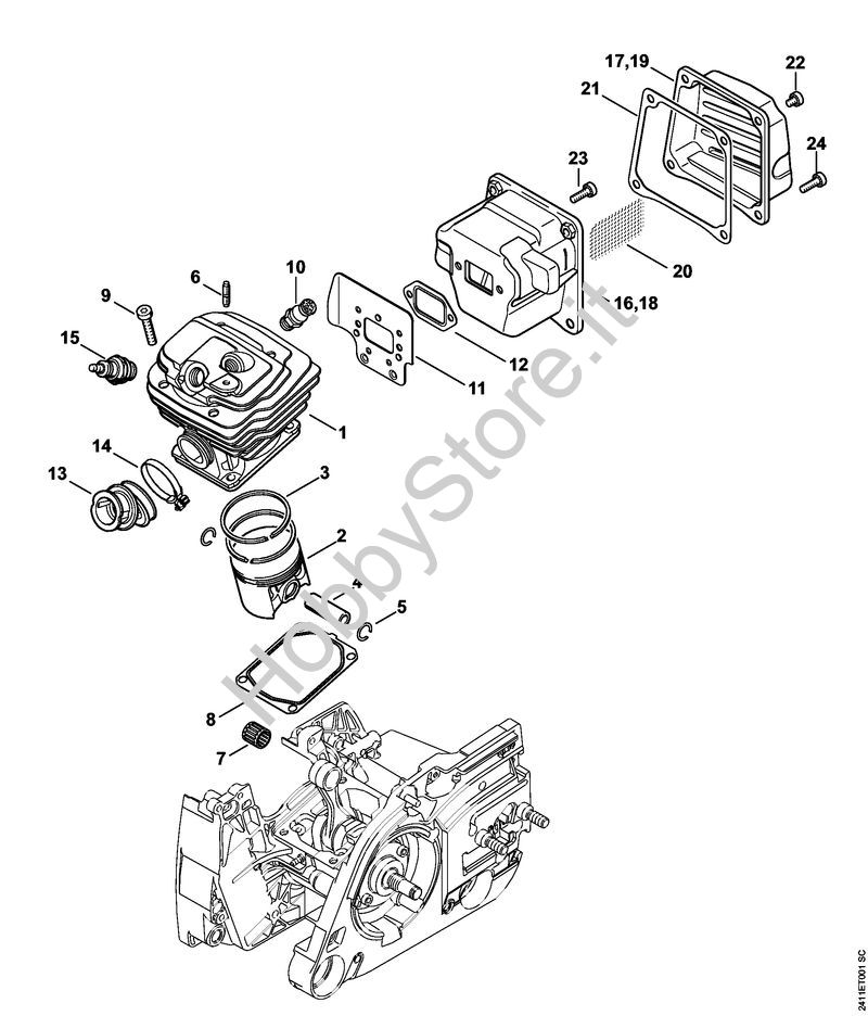 Ricambio originale Cilindro con pistone diam. 52 mm GS 461 GS 461 Stihl Contiene anche i ricambi da nr. 2 a 6