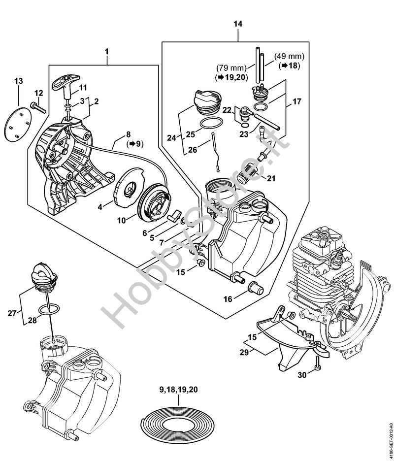 Ricambio Dispositivo di avviamento Tosasiepi (HL) HL 90 K STIHL Contiene anche i ricambi nr. da 2 a 8, 10, 11