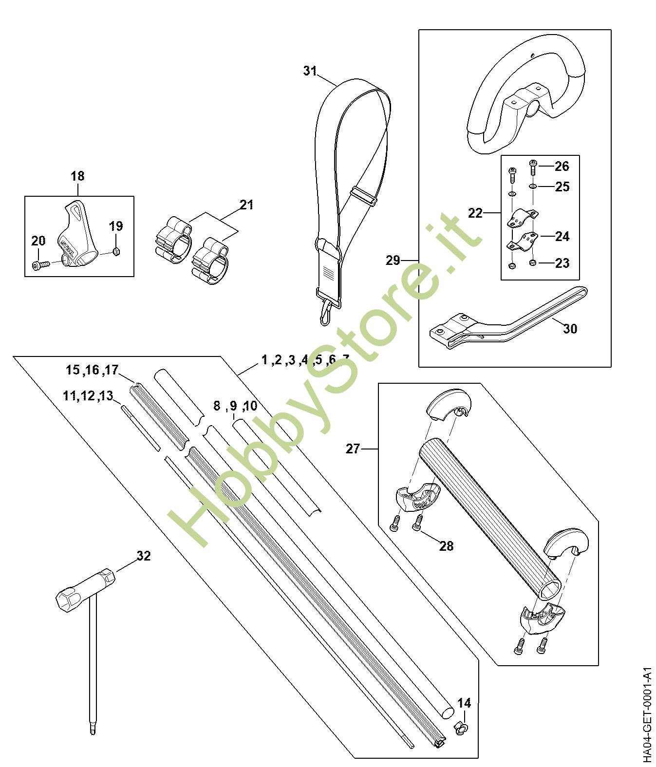Ricambio Stelo Tosasiepi a batteria (HLA) HLA 135 STIHL Contiene anche i ricambi nr. 8, 11, 14, 17