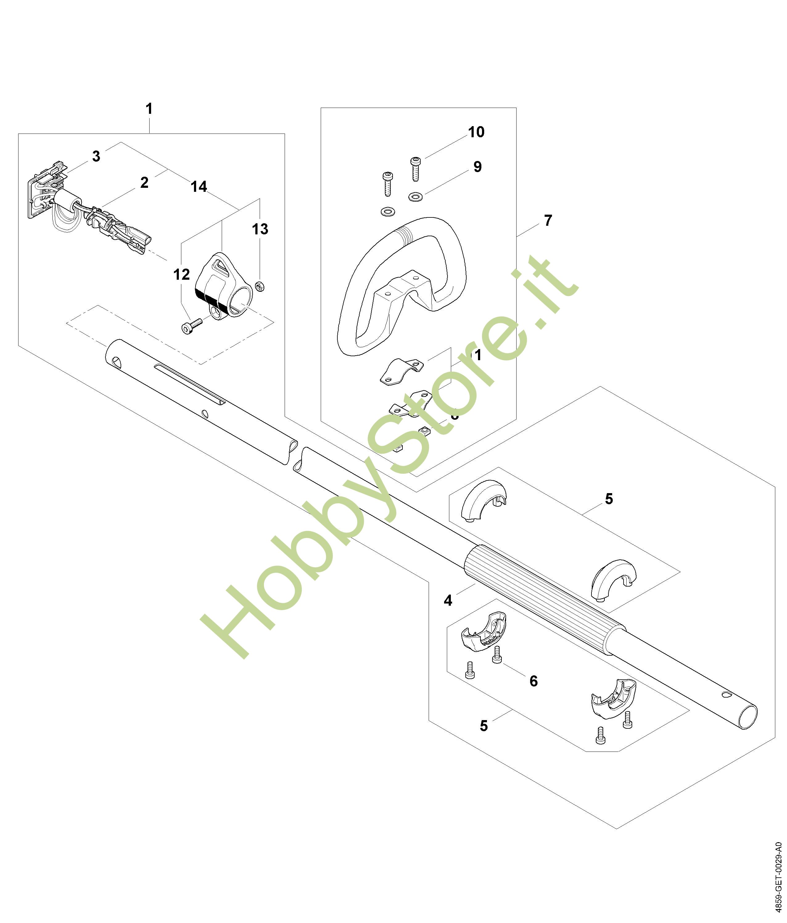 Ricambio Stelo Tosasiepi a batteria (HLA) HLA 66 STIHL Contiene anche i ricambi nr. da 2 a 6, 12 a 14